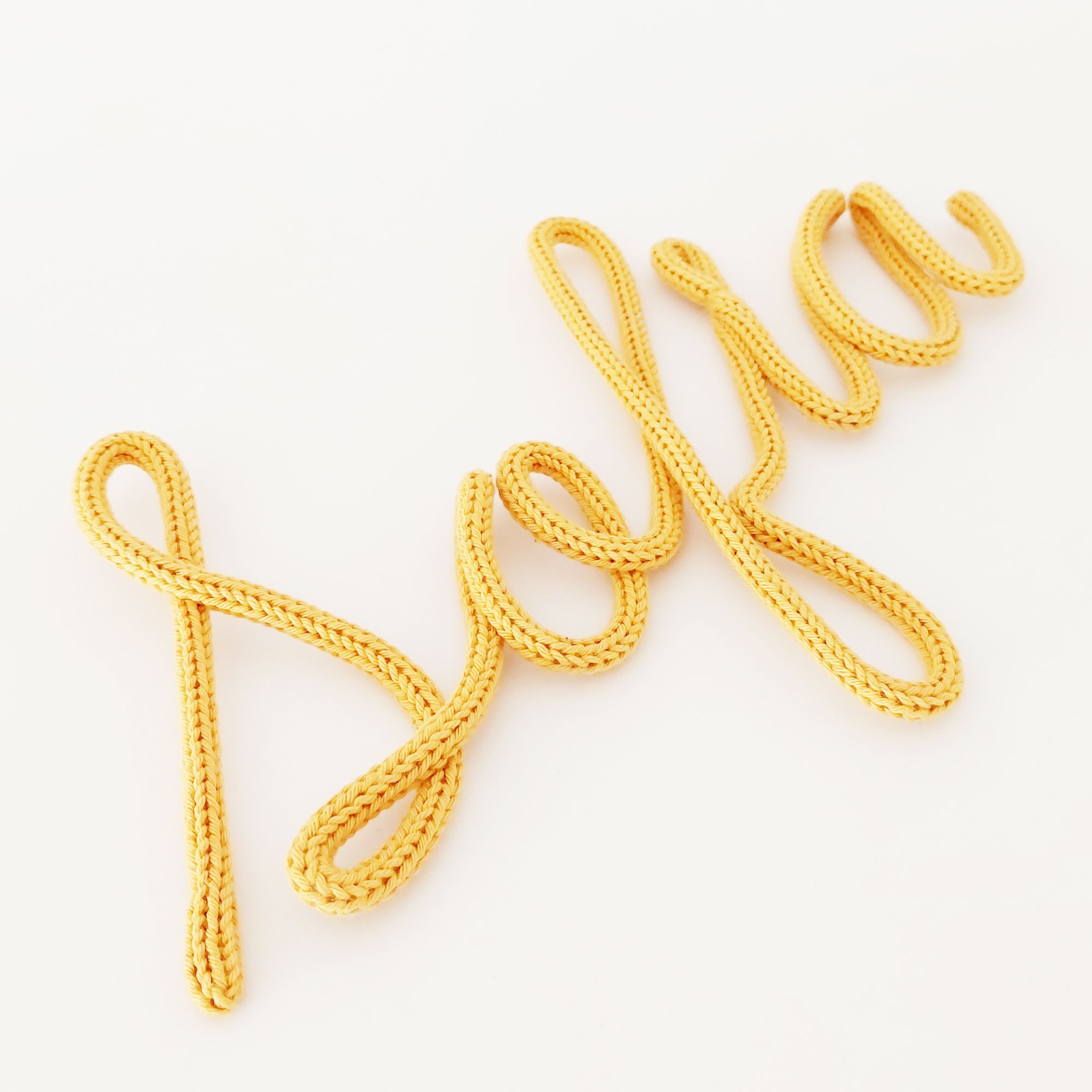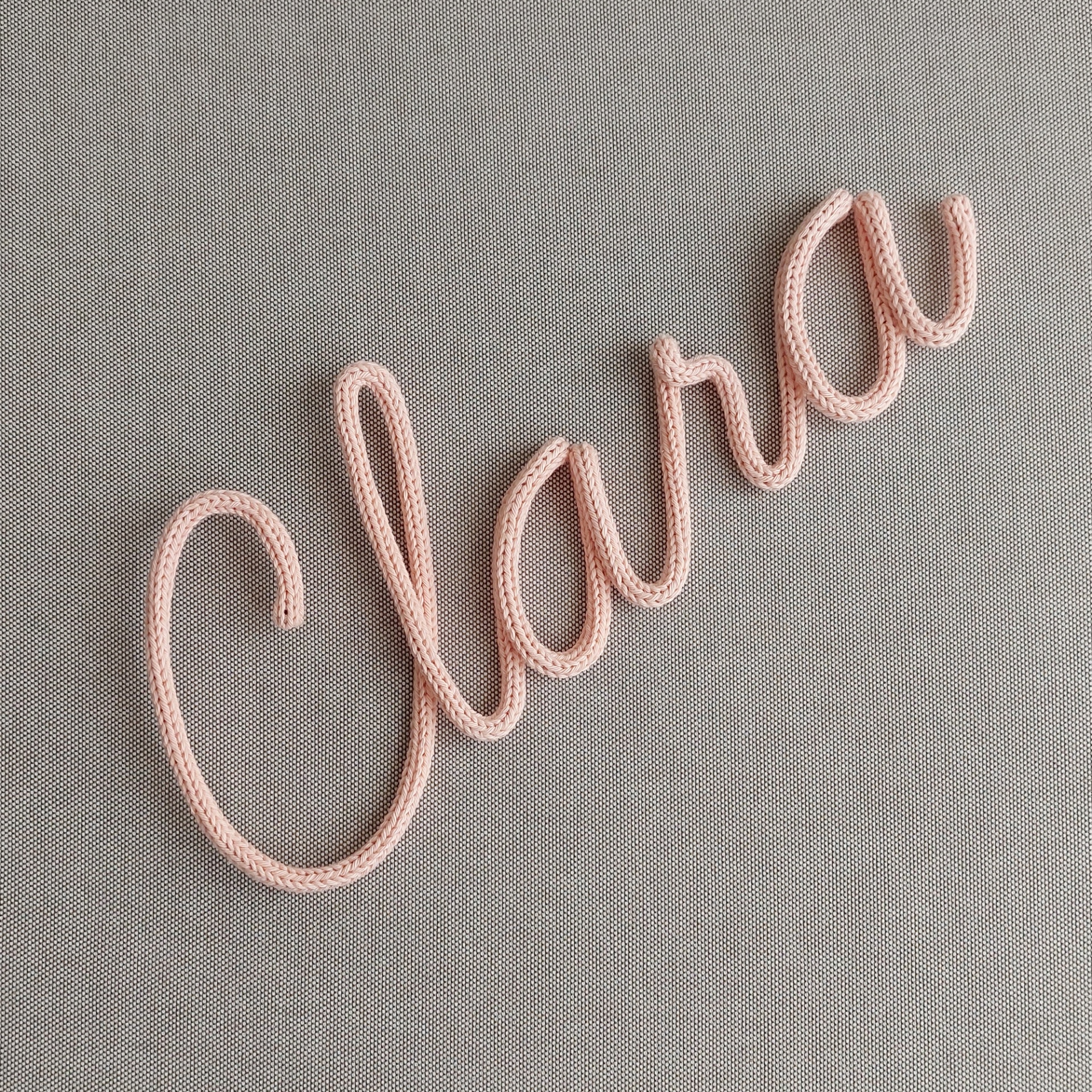 Os nomes em tricotin são moldados em arame de alumínio e cobertos com um cordão tricotin feito com fio de algodão certificado OEKO-TEX® STANDARD 100.